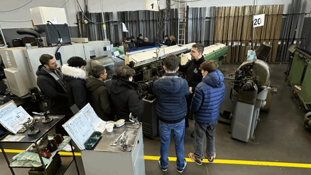 Hanno osservato da vicino i torni automatici e le macchine CNC ed è stato spiegato loro il percorso di un componente: dal disegno tecnico alla realizzazione, fino al controllo qualità.